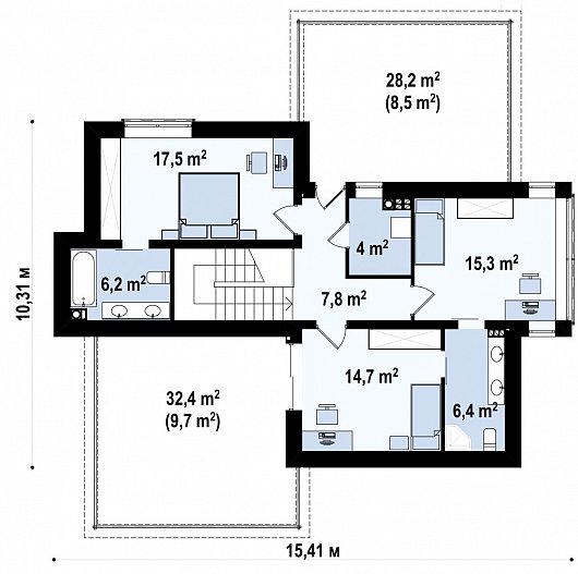 The highlight of the cottage is of course three terraces, two of which are located on the second floor. They can organize a vacation for family and friends, placing several companies at the same time.