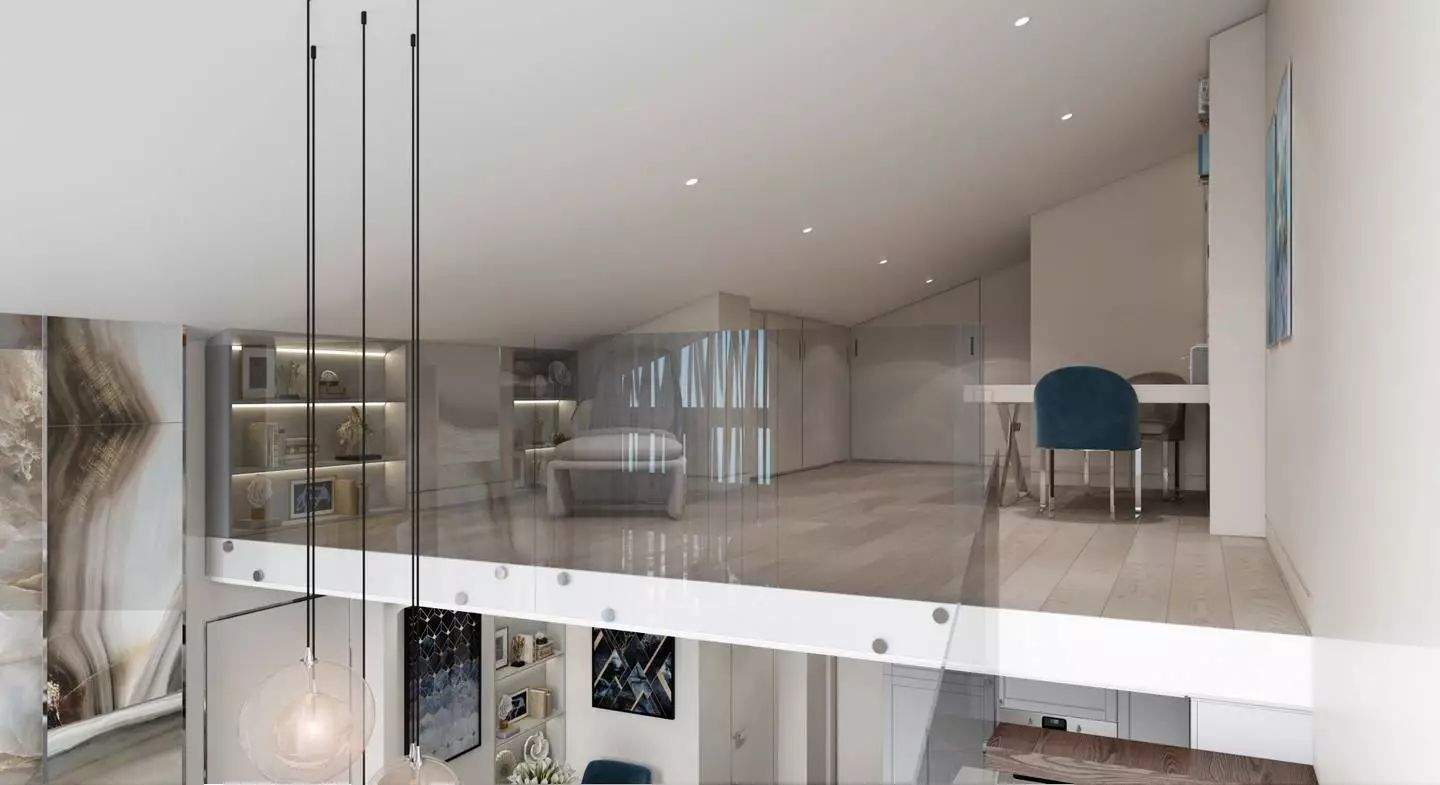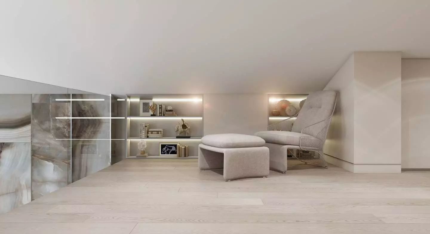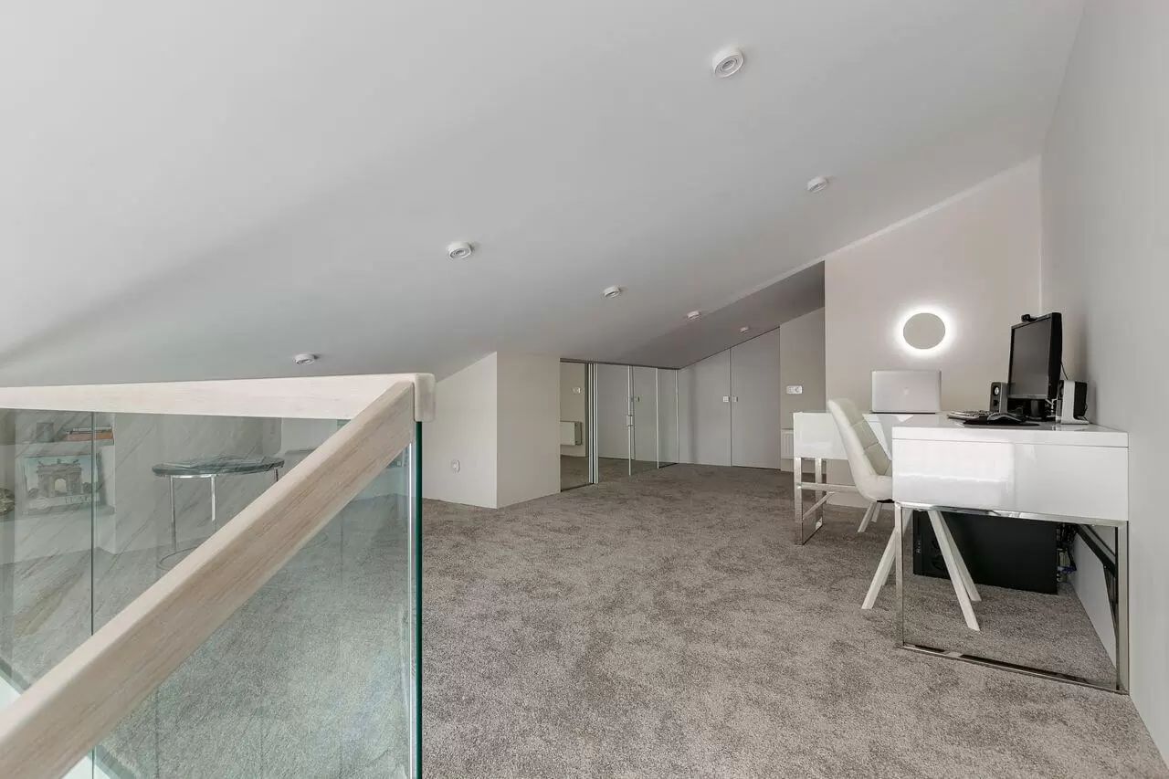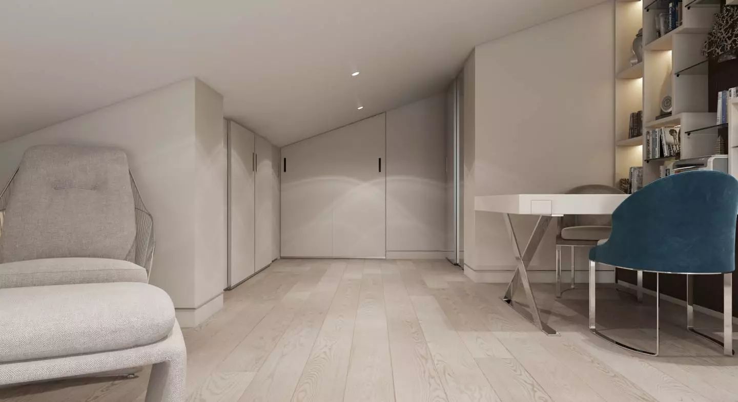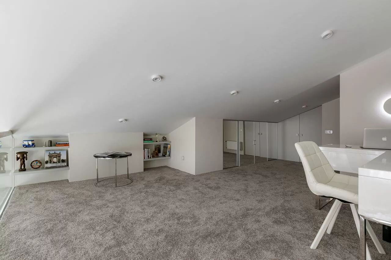 A home office was placed on the second attic floor and a small lounge area was equipped.