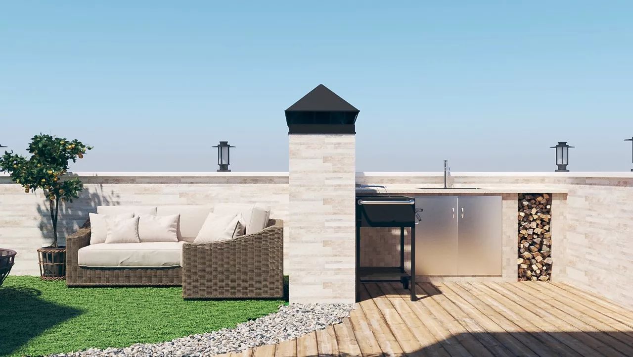 On the roof of the Country-TownHouse residential complex, we have equipped places for comfortable accommodation of several people, as well as a mini-kitchen with a grill, which makes the terrace an excellent platform for summer picnics or holidays with friends and family. If not all, then very many dream about such a place for rest.