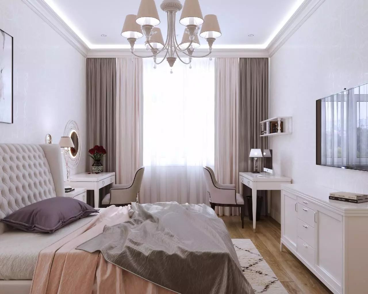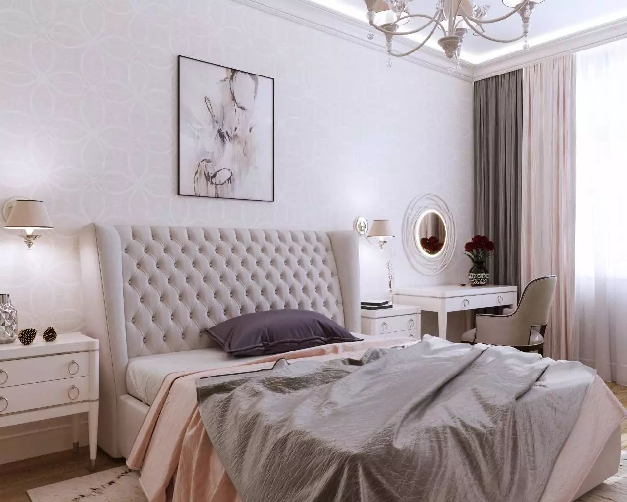 Comfort and coziness are the main things that should be in the interior of the bedroom. This effect can be achieved both by using calm and light shades, and by choosing brighter colors. But in the bedroom it is still important not to overdo it with color – such a space should set you up for relaxation, and not vice versa. This is how the bedrooms of parents and teenage daughter were created in the project of this apartment.