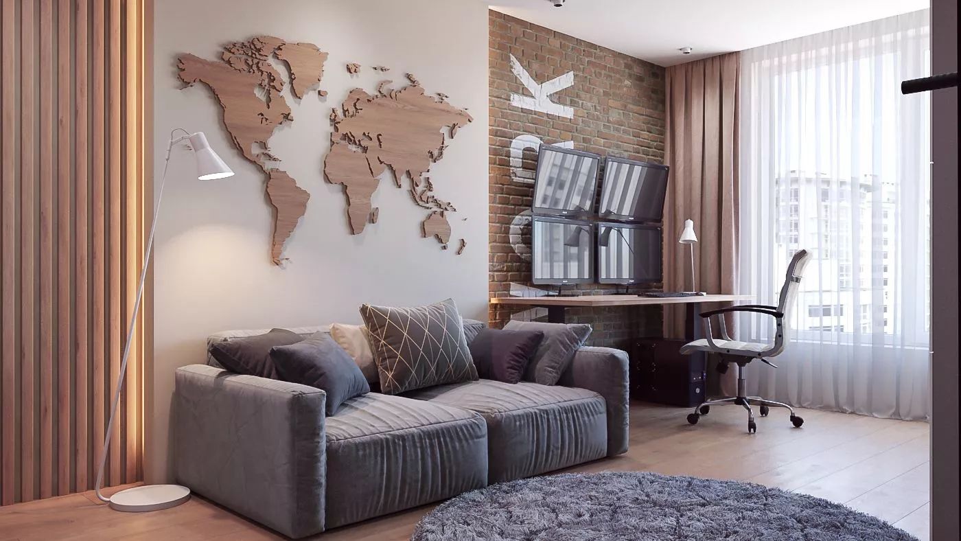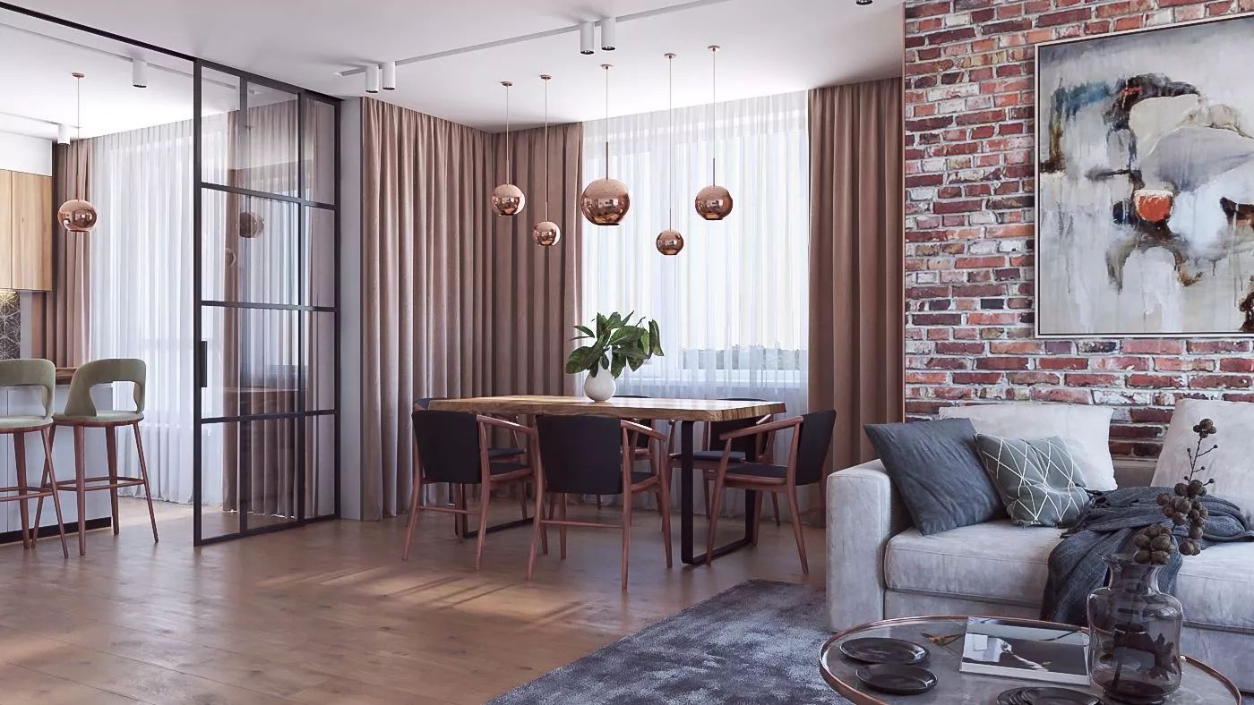 For the accent wall in the living room, we chose a brick finish – together with some pieces of furniture and decor, this gives the interior a “loft” feel.