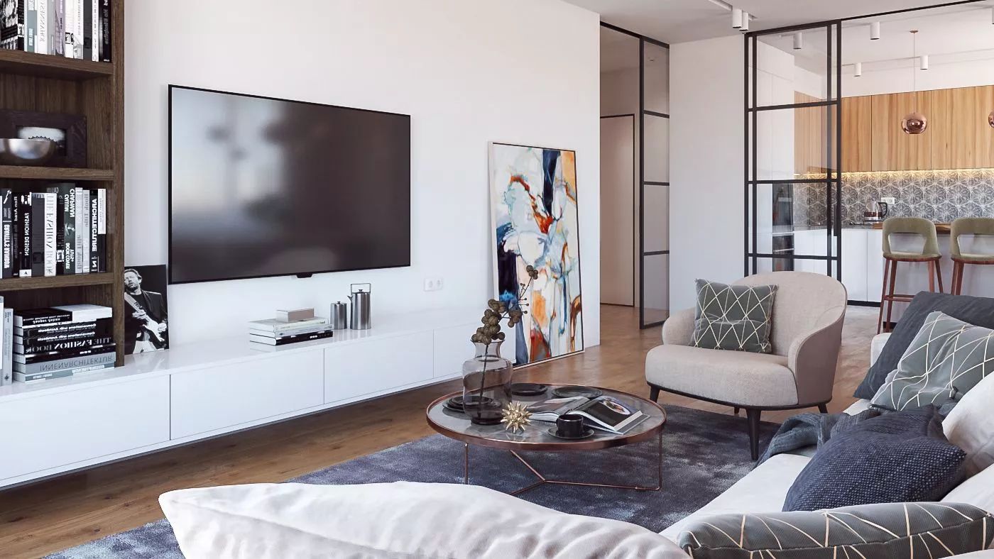 The interior of a spacious 4-room apartment was created for a young family with a child, a girl of primary school age.